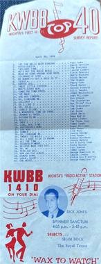 The menu was pure 1958 space-age fun — steak and potatoes dressed up in cosmic names: The Menu Frozen Fruit of VenusStardust SteakPotatoes of the SunGreen Beans of the GalaxyUniverse Cherry Applesauce Salad Placed on a Leaf of Cosmic LettuceRainbow Rolls & Moon ButterJupiter Lemon ParfaitComet CoffeeNeptune Nuts • Mars Mints Program & Menu · “Lost in Space” Junior-Senior Banquet · April 25, 1958 [view original] The Soundtrack In Norman’s senior year, KWBB Radio in Wichita published its Top 40 Survey for April 26, 1958. Here was the Top 10: KWBB Top 10 · April 26, 1958 1. Let the Bells Keep Ringing — Paul Anka2. Witch Doctor — David Seville3. Twilight Time — The Platters4. He’s Got the Whole World — Laurie London5. Wear My Ring Around Your Neck — Elvis Presley6. Stairway of Love — Marty Robbins7. My Bucket’s Got a Hole in It — Ricky Nelson8. Tequila — The Champs9. Kewpie Doll — Perry Como10. Sweet Little Sixteen — Chuck BerryRock and roll was edging out the old pop ballads. Elvis, Chuck Berry, and Ricky Nelson shared the charts with Perry Como and The Platters. Wichita teenagers were tuned to KWBB 1410 to keep up. |  KWBB Radio Top 40 Survey · April 26, 1958 [view original] |