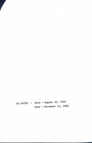 Joe Bayer memorial booklet · May 1986 · compiled by the Bayer family